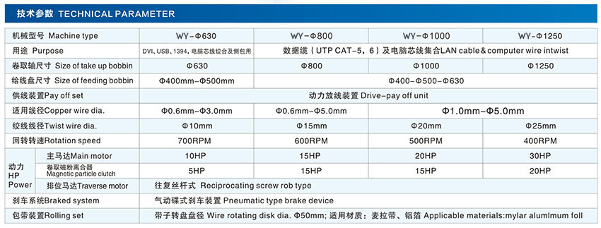 用途:適用于控制電纜、通訊電纜、電源線等PE或PVC被覆芯線絞合及中心包帶或側(cè)放包帶一次性完成。